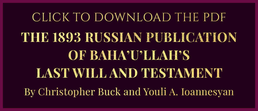 1901 – 1908 – ‘Abdu’l-Bahá’s Will and Testament: Balyuzi, H.M. ‘Abdu’l-Bahá: The Centre of the Covenant, pages 124-125