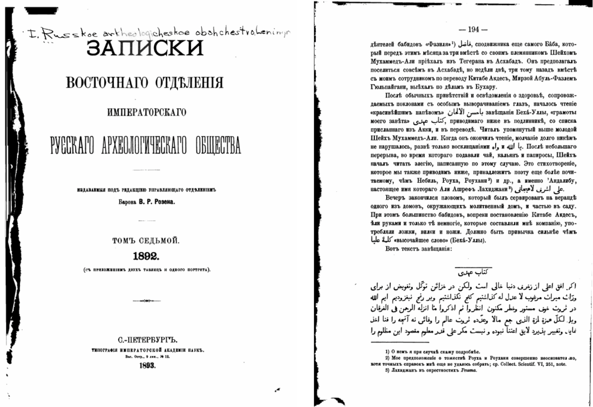 1893 – 1894 – ‘Abdu’l-Bahá approves the design of the First Bahá’í House of Worship in ‘Ishqábád: Taherzadeh, Adib. The Revelation of Bahá’u’lláh, Volume 4, pages 122-123.