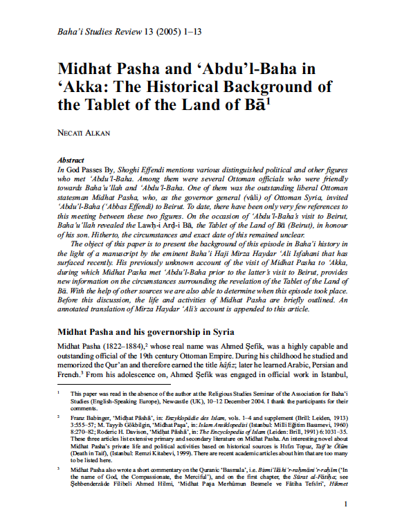 Necati Alkan is the author of Dissent and Heterodoxy in the Late Ottoman Empire: Reformers, Babis and Baha’is. Necati thoroughly reviewed all of the sections relating to Bahá’u’lláh’s exile in Constantinople (Istanbul), Adrianople (Edirne), the visit of Midḥat Páshá to Palestine, ‘Abdu’l-Bahá’s visit to Beirut in 1880 and the Content of the (1901-1908) Panel including the 1905 Commission of Inquiry with details from his original research and published papers and books. It is thanks to Necati’s research that we now know that ‘Abdu’l-Bahá wrote the “I Was a Hidden Treasure” commentary in Adrianople and not in Baghdád as had been believed for decades.