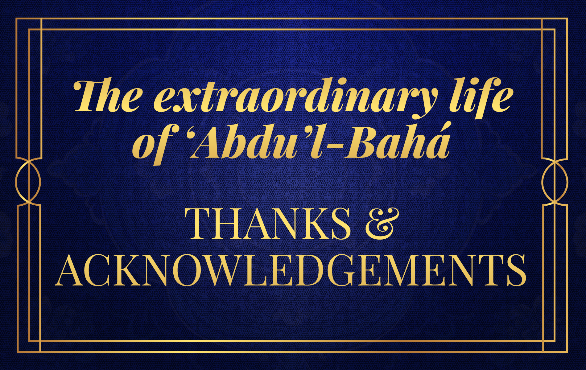 My heartfelt thanks to the hardworking individuals and teams behind the following Bahá’í websites without which “The Extraordinary Life of ‘Abdu’l-Bahá” would not have been possible. Living in Congo, I had access only to my family’s well-furnished Bahá’í library, but relied very heavily on all the sites below. They have my eternal gratitude.