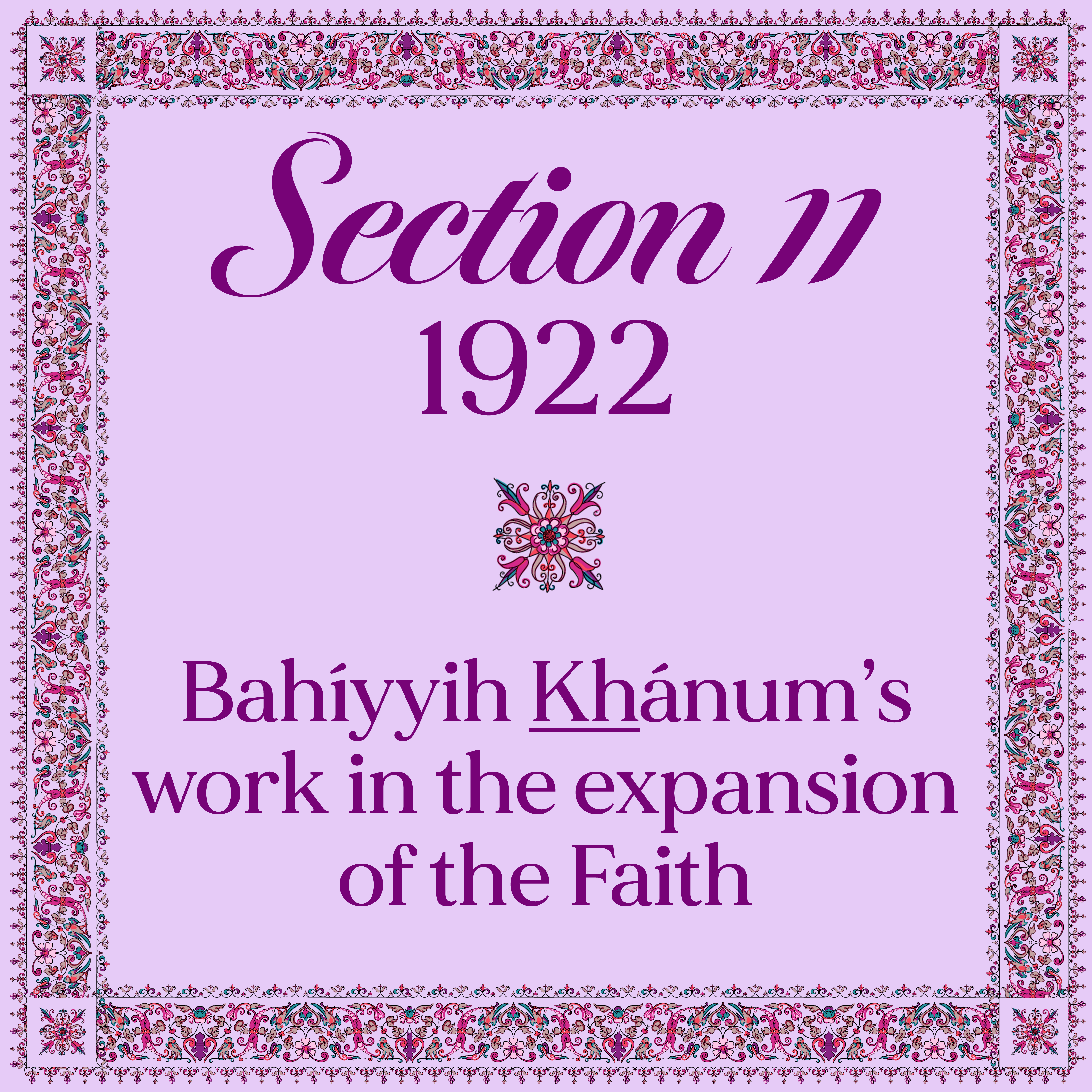 Early April 1922: Shoghi Effendi appoints Bahíyyih Khánum to the headship of the Faith