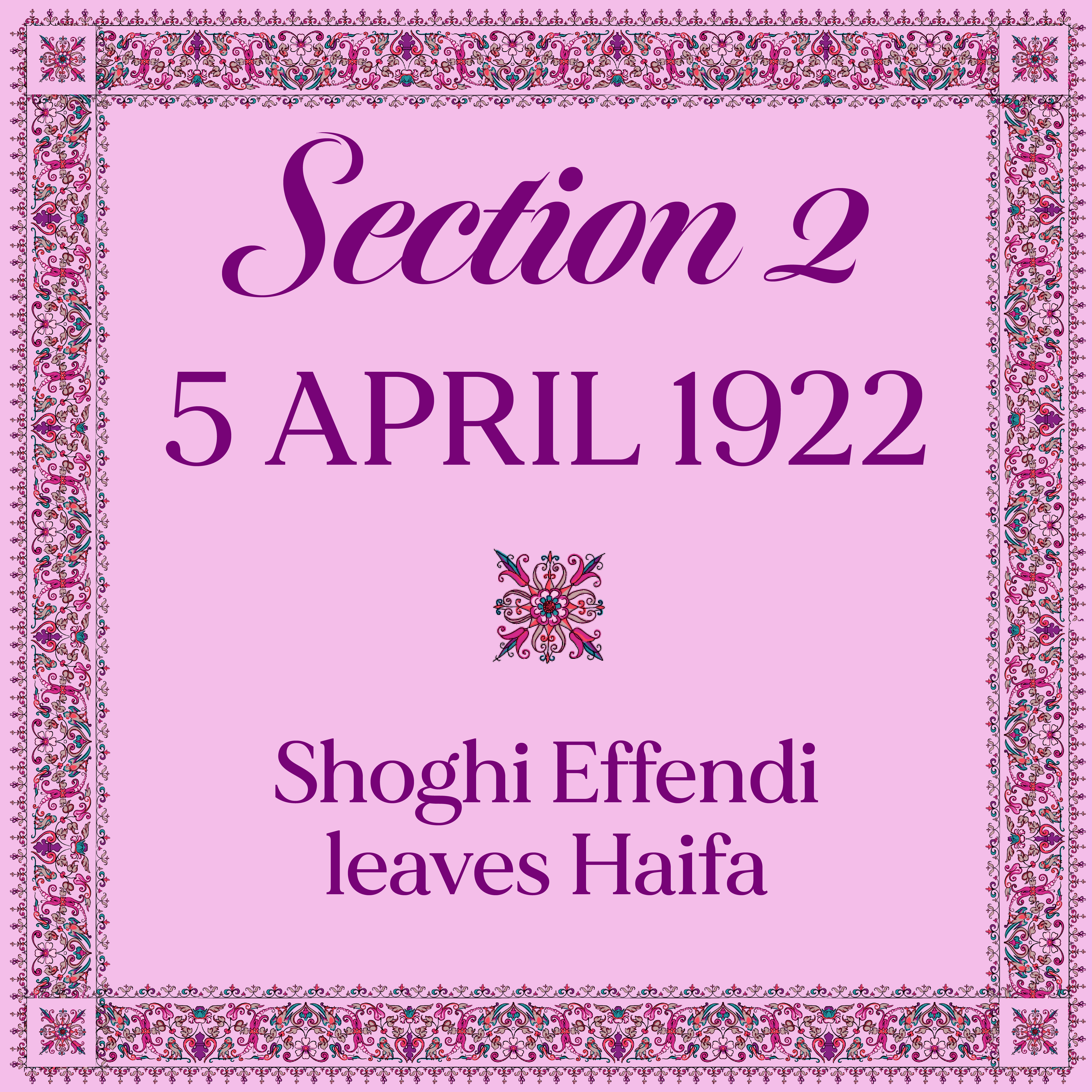 Then, on 5 April 1922, Shoghi Effendi left Haifa.