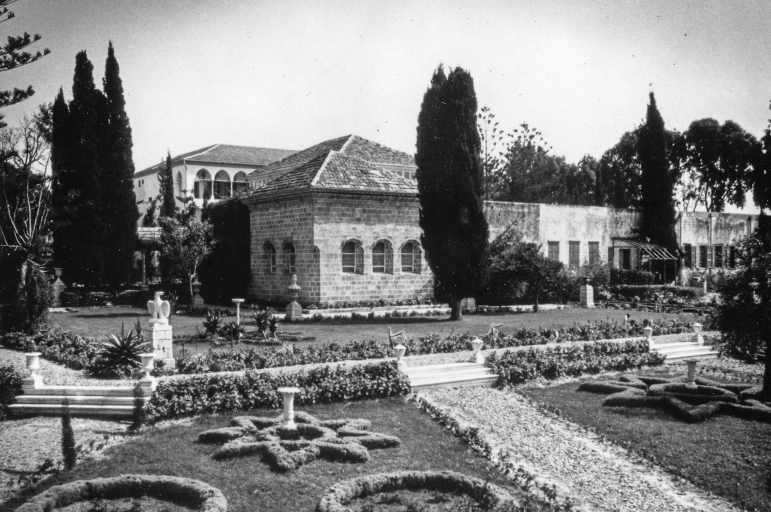 Shrine of Bahá’u’lláh and surrounding gardens, 1957. Source: Bahá'í Media Bank, © Bahá'í International Community 2024.