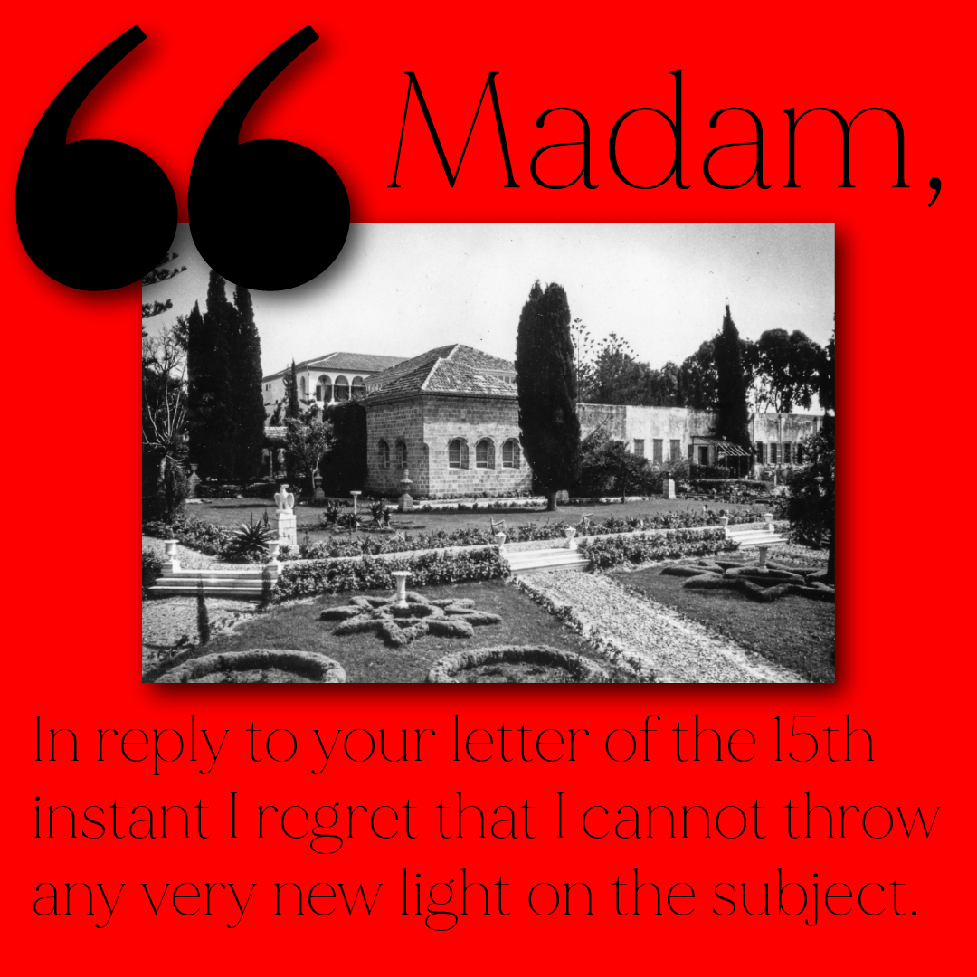 15 October 1922: Bahíyyih Khánum’s letter to the governor
