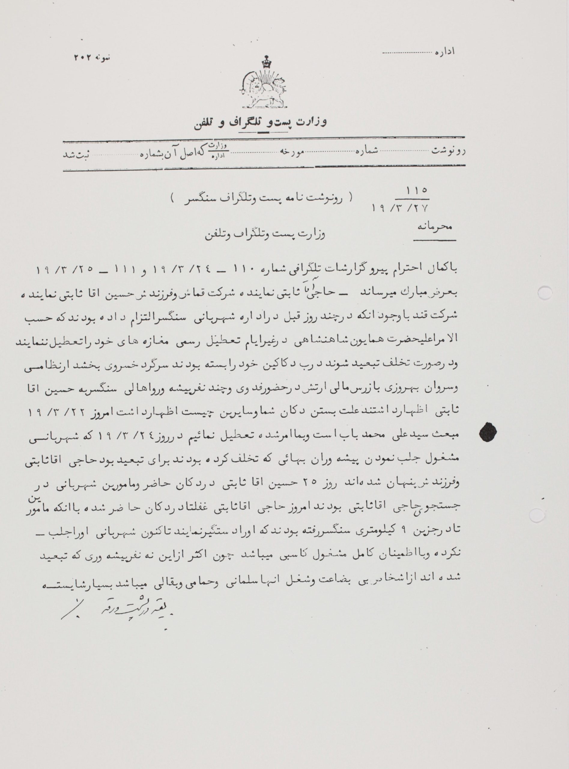 As an example, this is a letter, deeply spiritual in spirit, which the Greatest Holy Leaf sent to the Local Spiritual Assembly of Ṭihrán, acknowledging a very generous contribution of £14,000 in today’s currency: