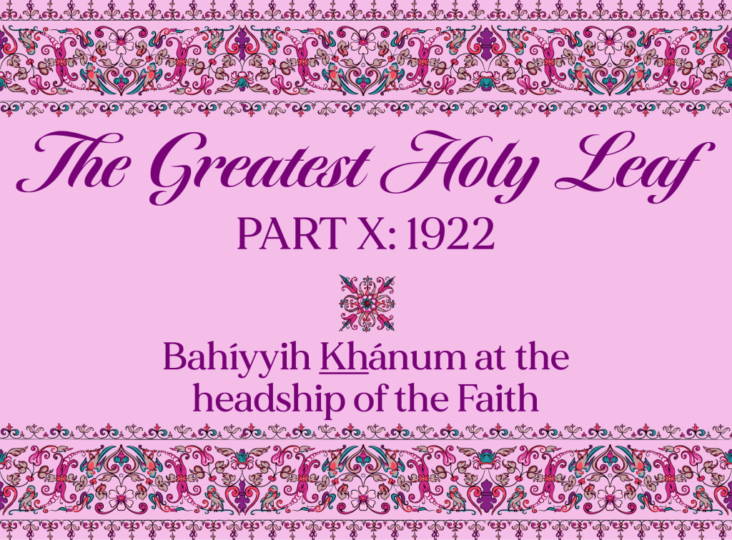 May 1922: The Greatest Holy Leaf’s letter warning of Covenant-breakers: “At this critical time”