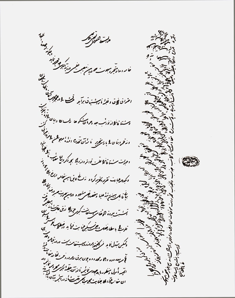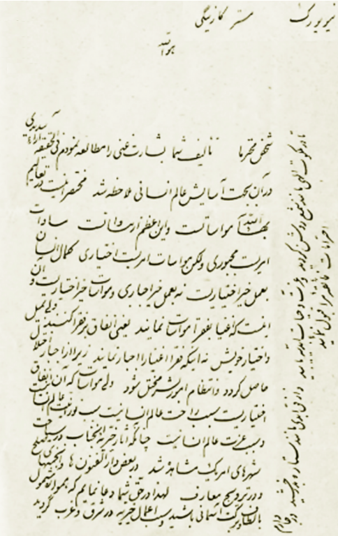 Facsimile of the handwriting of the Greatest Holy Leaf. Source: Bahá'í Sacred Relics.
