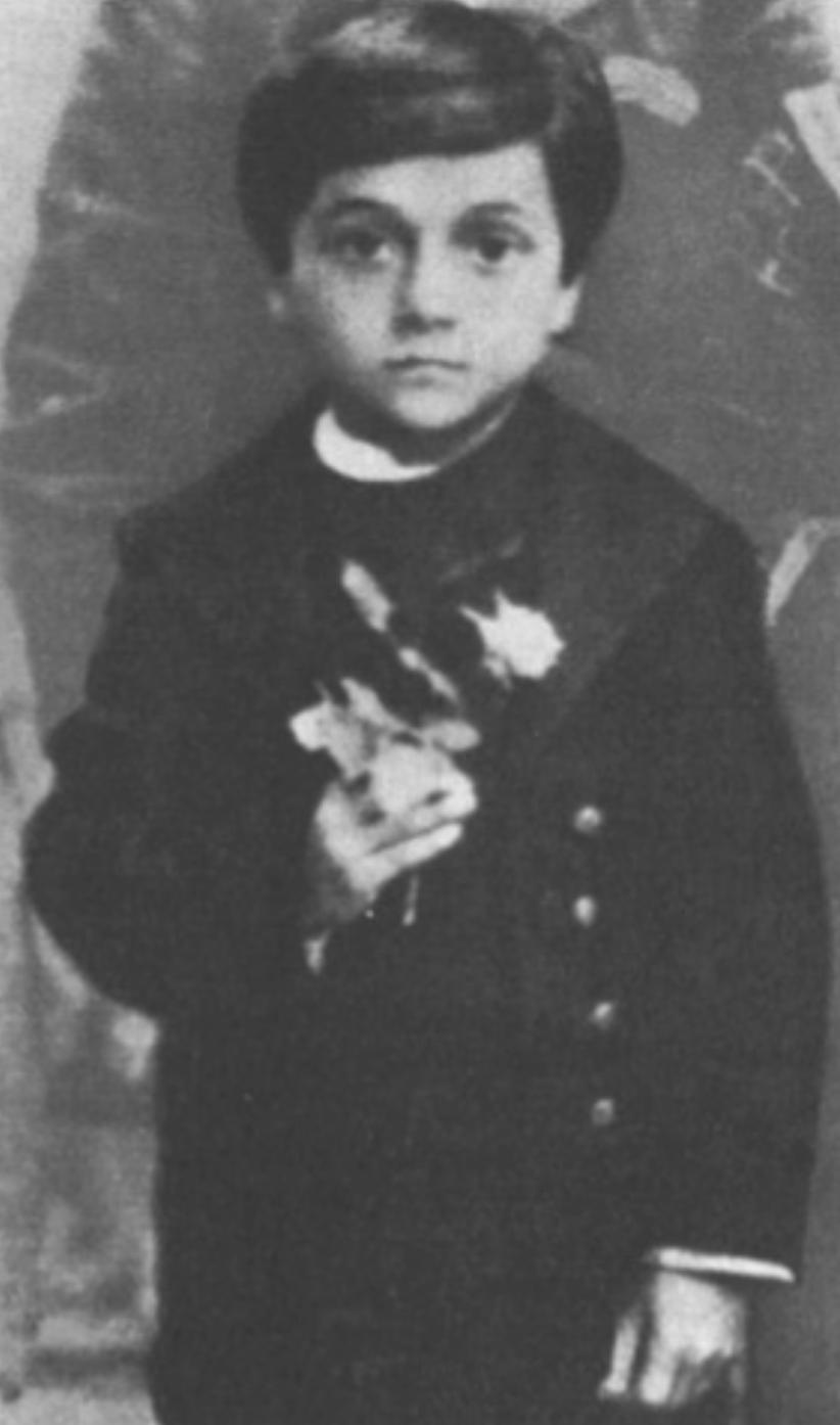 Shoghi Effendi during his school years, holding a small bouquet. Source: The Priceless Pearl, between pages 24 and 25.