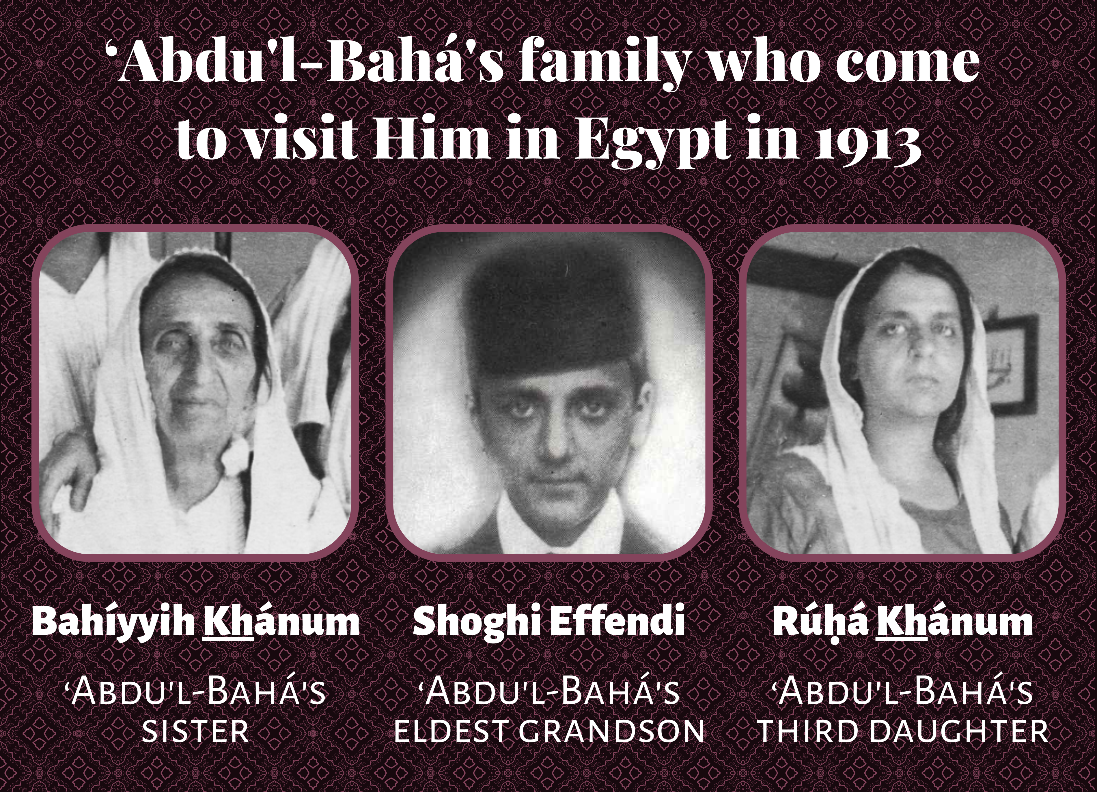 Bahíyyih Khánum, Shoghi Effendi, 16 years old, his mother and one of his aunts, arrived in Alexandria on 1 August 13, 45 days after 'Abdu'l-Bahá.
