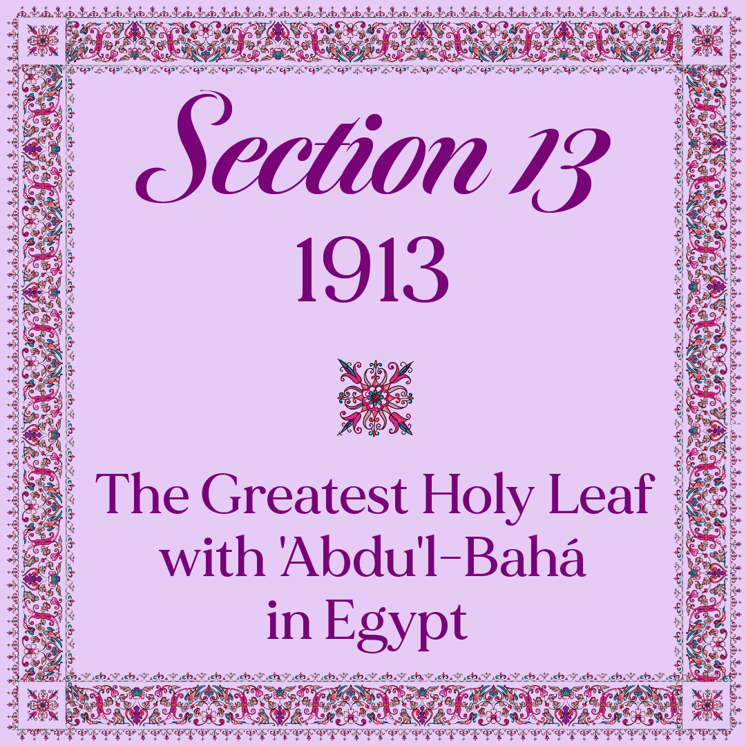 This part covers the life of the Greatest Holy Leaf from the age of 60 in 1906 to the age of 67 in 1913.