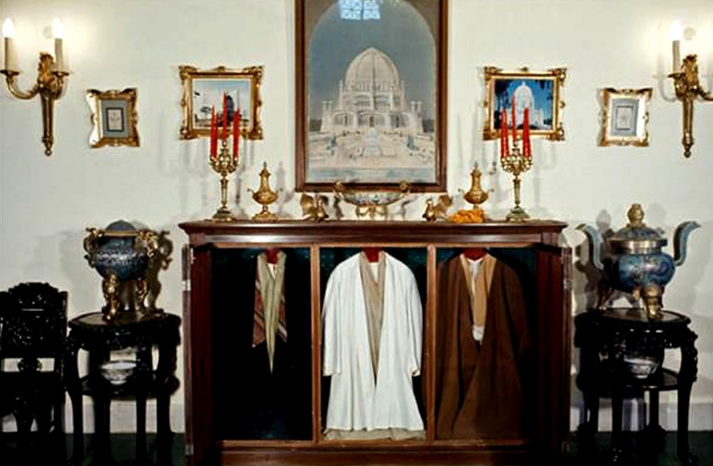It was Bahíyyih Khánum who unveiled these relics to female pilgrims, escorting them to a room in the house of the Master where they were kept in order to allow them to view the portraits of Bahá'u'lláh and the Báb.