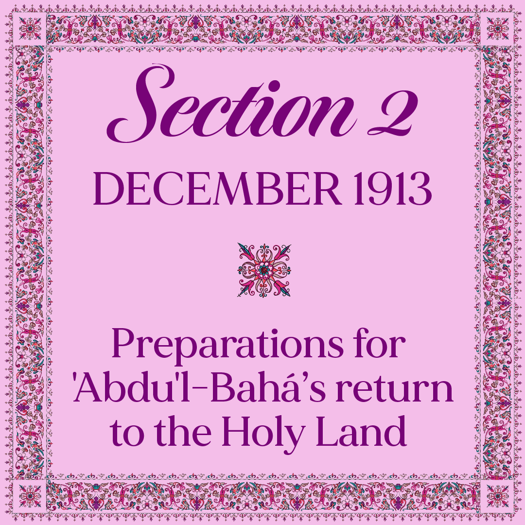 2 – 5 December 1913: The Holy Family prepares for ‘Abdu’l-Bahá’s arrival