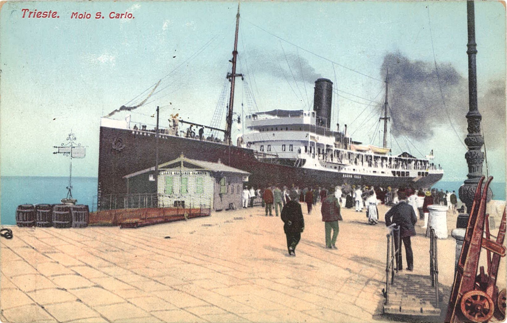 The S.S. Baron Call, 'Abdu'l-Bahá’s ship as He sails from Egypt to Haifa, arriving on 5 December 1913. Source: Wikimedia Commons.