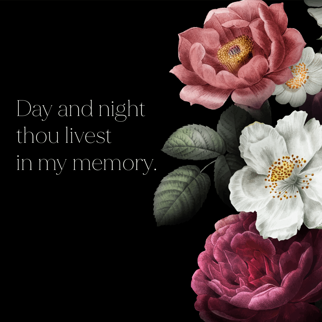 Day and night thou livest in my memory. Whenever I remember thee my heart swelleth with sadness and my regret groweth more intense. Grieve not, for I am thy true, thy unfailing comforter.