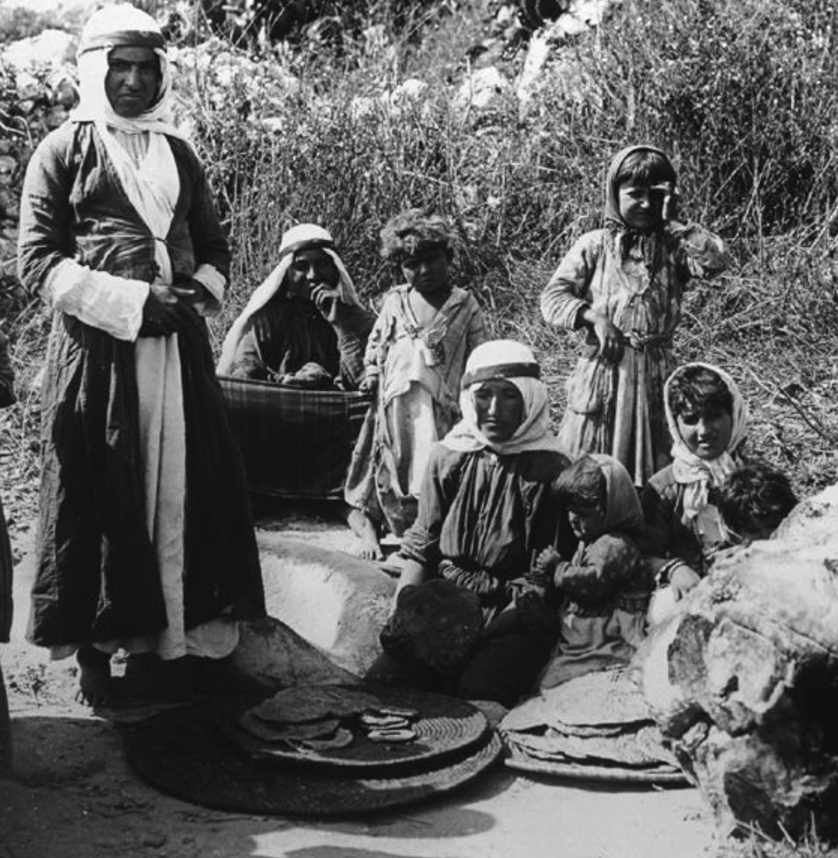 A Druze family making bread in 1920. Source: Wikimedia Commons.