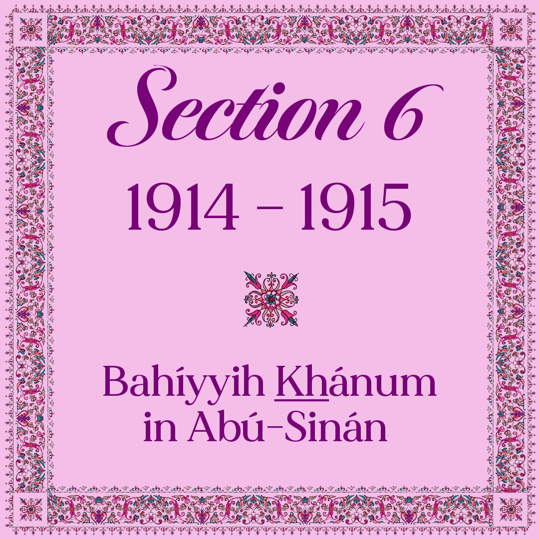This part covers the life of the Greatest Holy Leaf from the age of 67 in 1913 to the age of 74 in 1920.