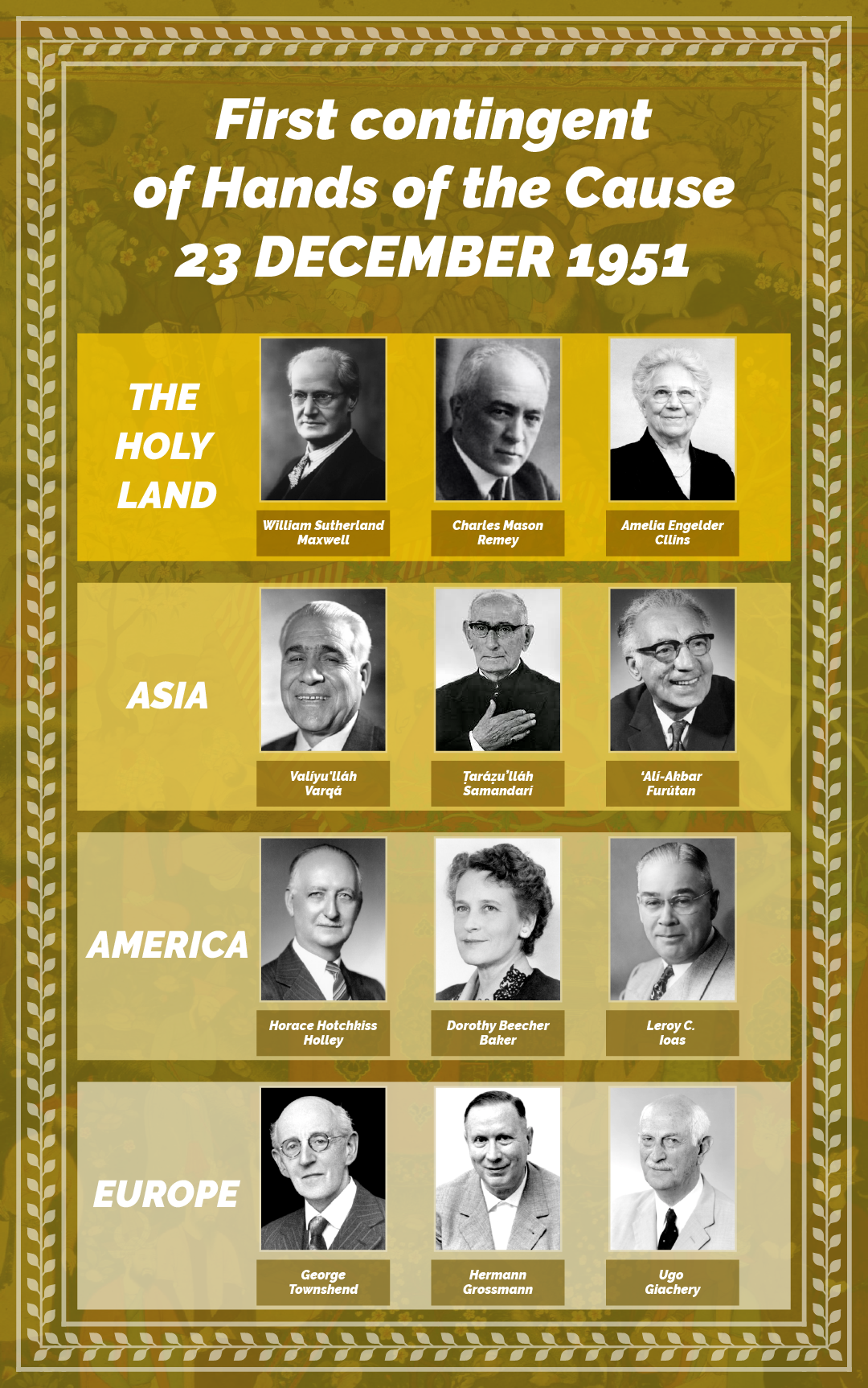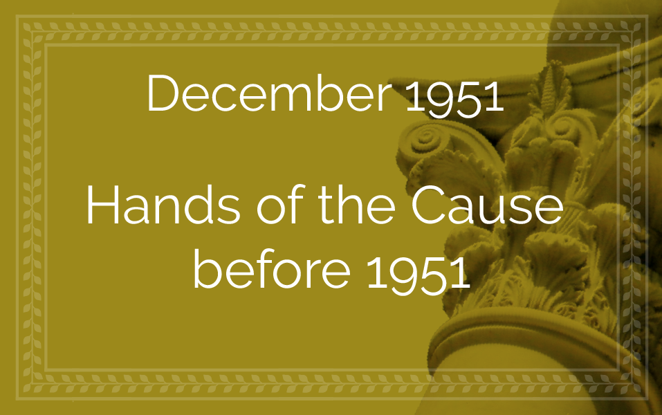 The remainder of the Guardian’s 24 December 1951 message was concerned with explaining the institution of the Hands of the Cause and appointing the Hands themselves.