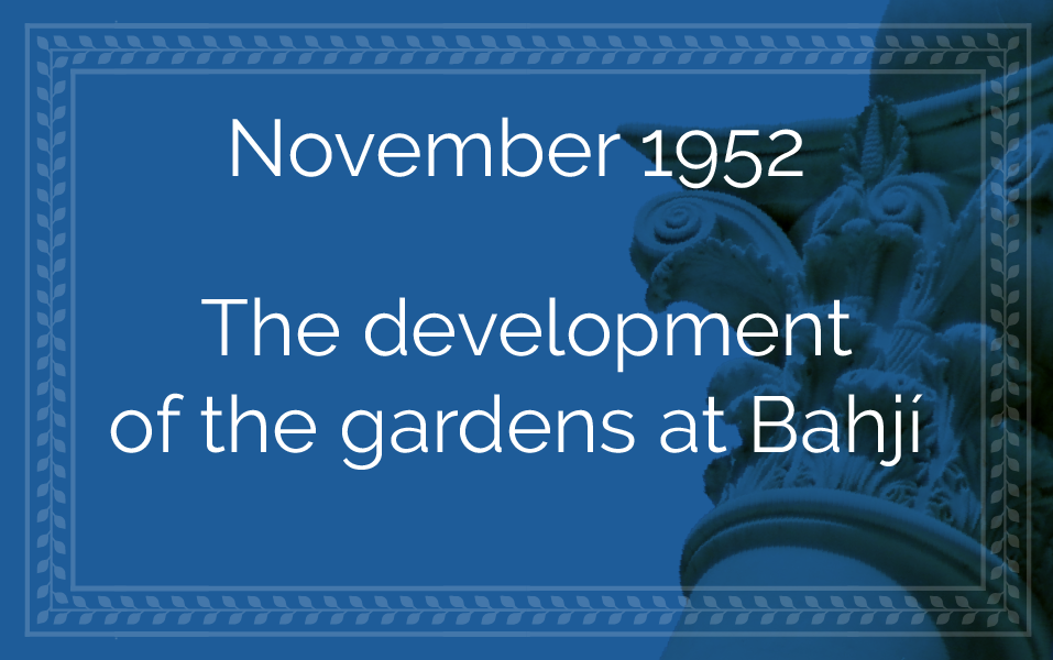 12 November 1952 at 2 PM: The Guardian begins planning the gardens around the Ḥaram-i-Aqdas