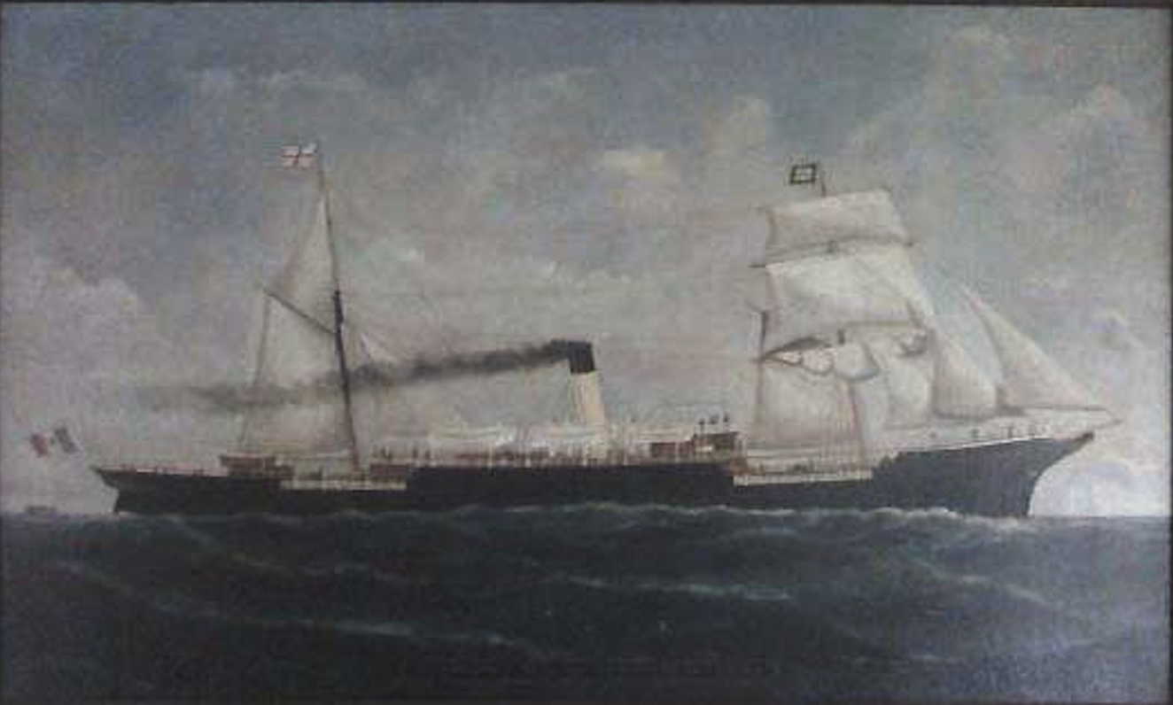 The Khedivial Mail Steamship Company's Kosseir, the ship on which 'Abdu'l-Bahá sailed to Egypt on 29 August 1910. Pictured here when she was the Mexican-owned Esteban de Antunano in 1884-1886.