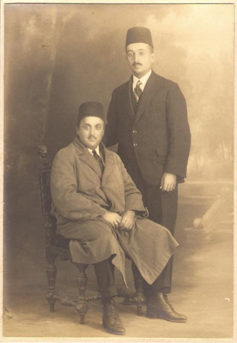 The Yazdí family in Ramleh, Egypt: Ḥájí Muḥammad Yazdí, ‘Alí Yazdí’s father, and ‘Alí Yazdí, Shoghi Effendi’s childhood friend. Sources: Bahaipedia.