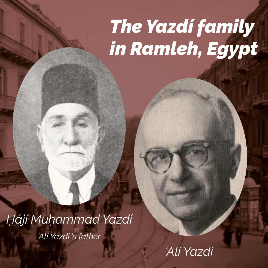 Bahá'u'lláh sent Ḥájí Muḥammad Yazdí to Egypt with two other Bahá'ís. The three of them worked hard and built a successful business they named “Société Rúhaníyyih” (Spiritual Company), which soon became the largest and best department story in Egypt. Each of the three partners established the Faith in Alexandria, Cairo and Port Said. Ḥájí Muḥammad Yazdí was the one who settled in the beautiful suburb of Ramleh, in Alexandria. ‘Alí Yazdí was born in Alexandria in 1899, two years after Shoghi Effendi.