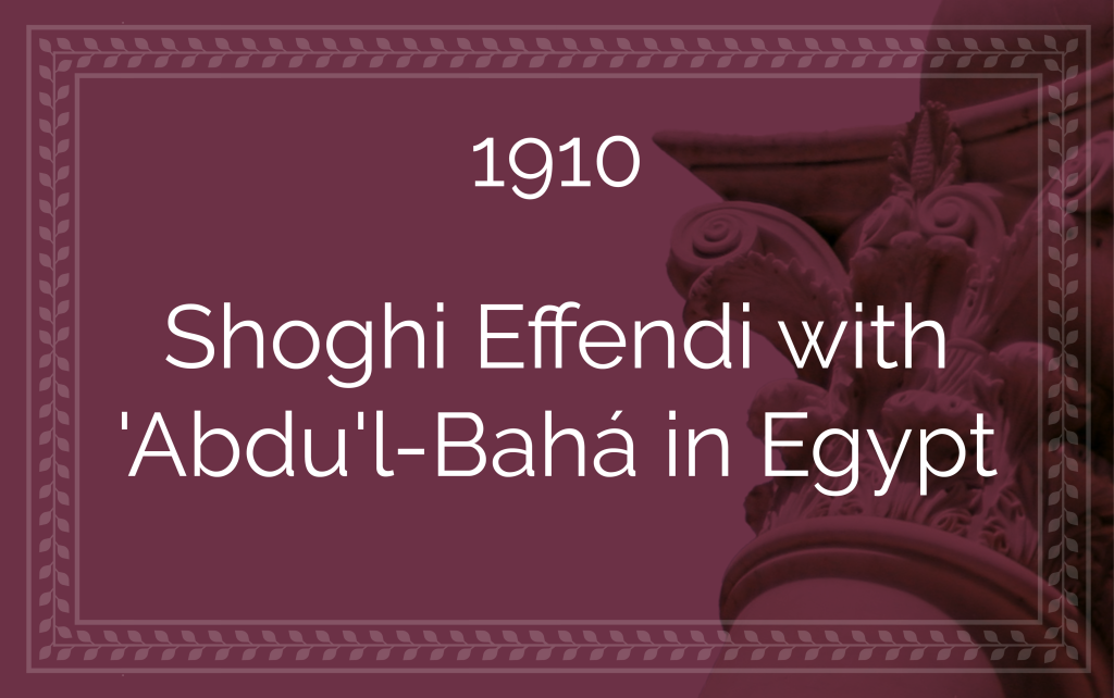 In 1910, immediately after leaving Haifa on 29 August 1910, 'Abdu'l-Bahá sent for Shoghi Effendi to join him Port Said, Egypt with the next ship. From there, Shoghi Effendi traveled to Ramleh with 'Abdu'l-Bahá for several months.