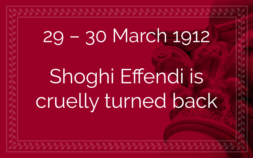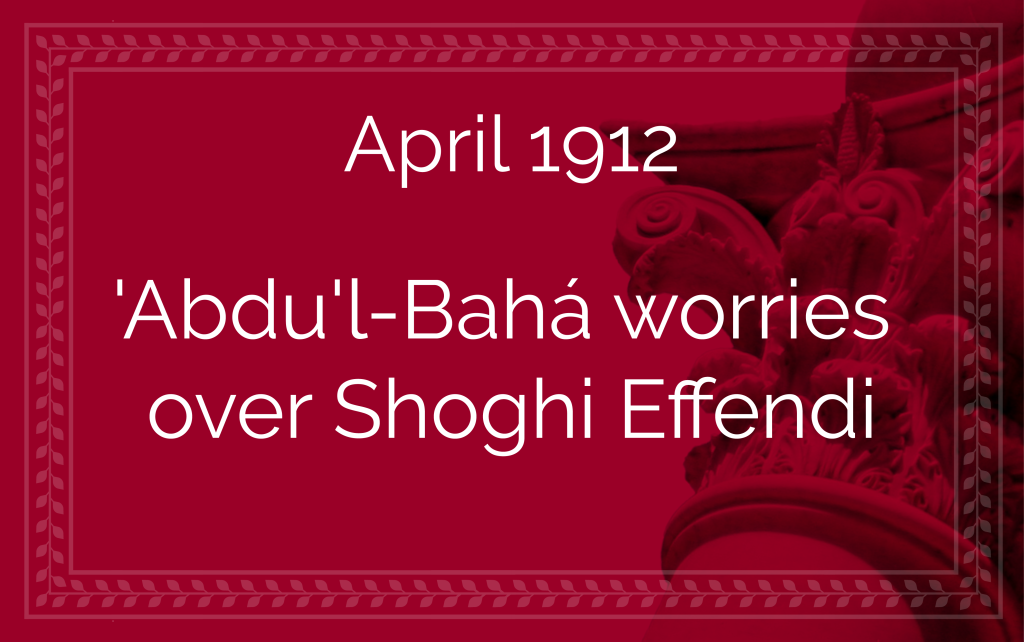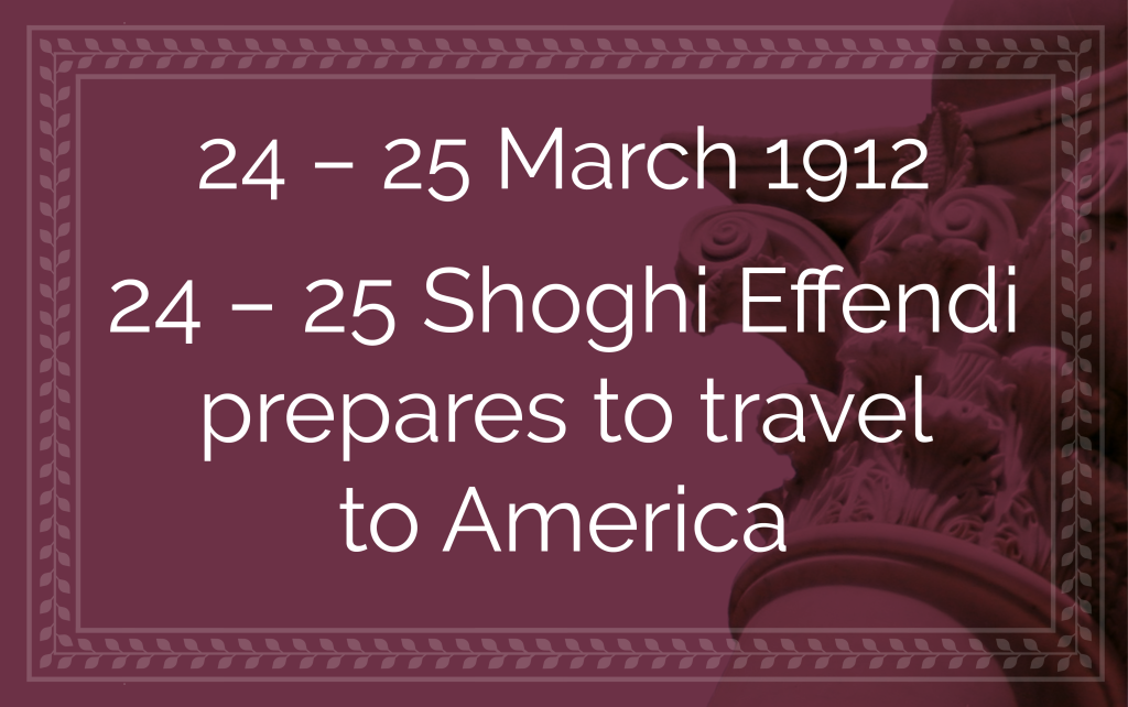 On Monday March 25, 1912, ‘Abdu’l-Bahá and Shoghi Effendi left the villa in Ramleh as 'Abdu'l-Bahá turned to wave His last farewell to His anxious and worried family, looking down at Him from the veranda.