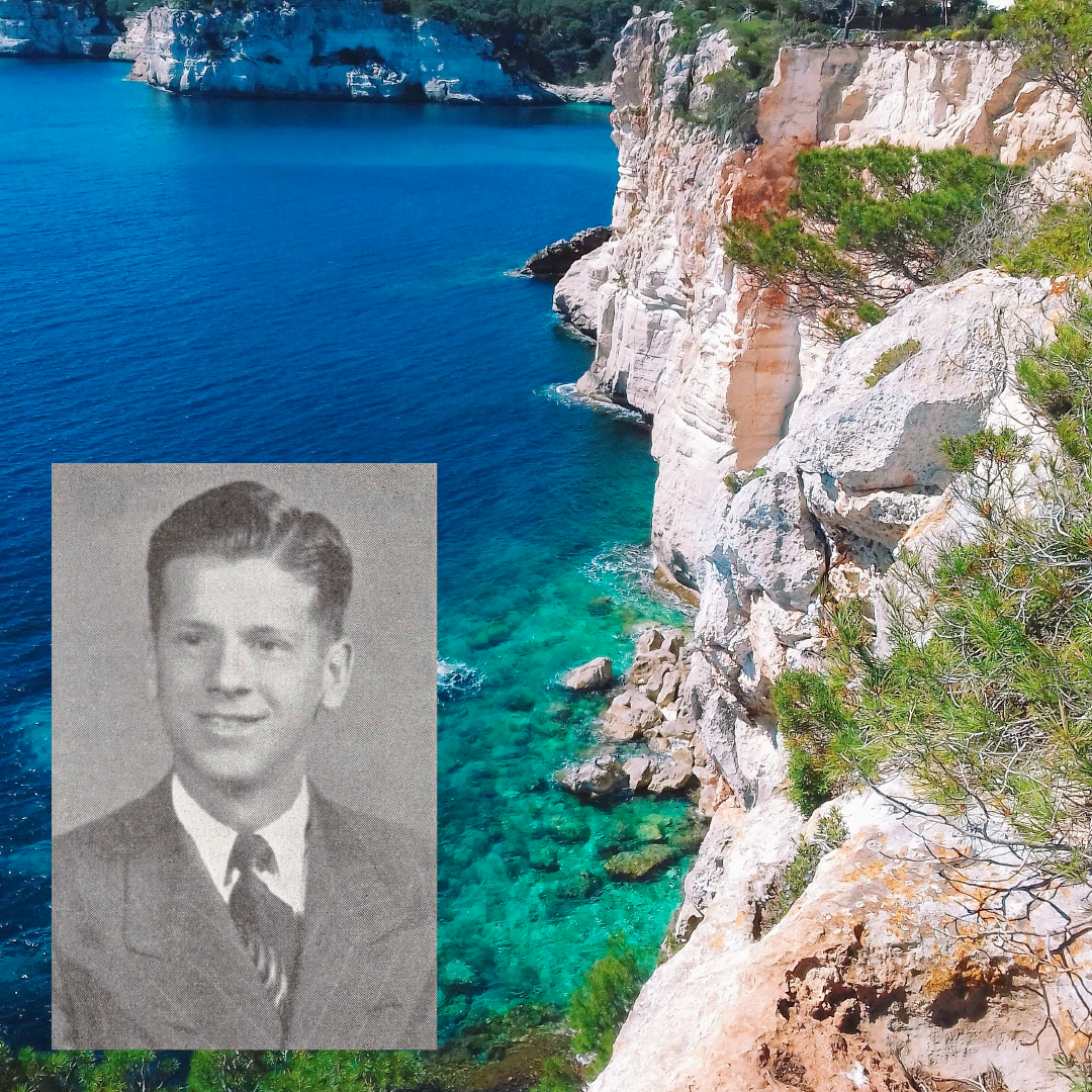 Leroy Ioas’ nephew Charles Ioas, Knight of Bahá'u'lláh to the Balearic Islands. Source: Bahaimedia. Background: A photo of Menorca, one of the Balearic Islands by Reiseuhu on Unsplash.
