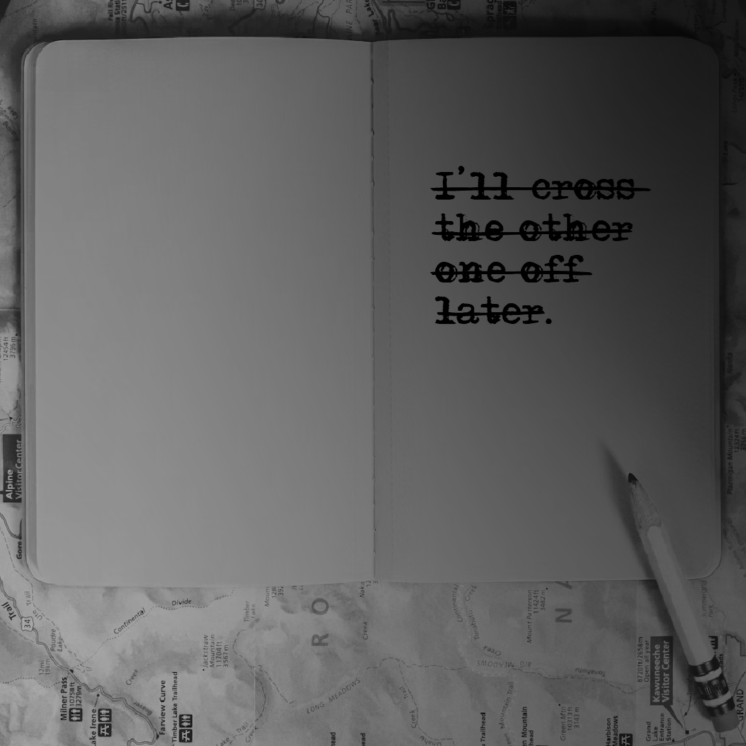 “I’ll cross the other one off later.” Background image by Clay Banks on Unsplash.