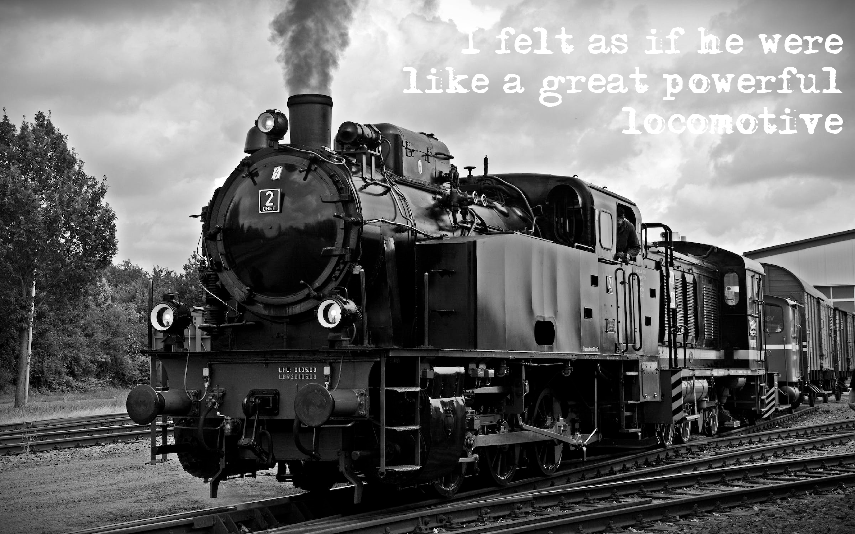 “I felt as if he were like a great powerful locomotive.” Steam locomotive background image by Pixabay on Pexels.