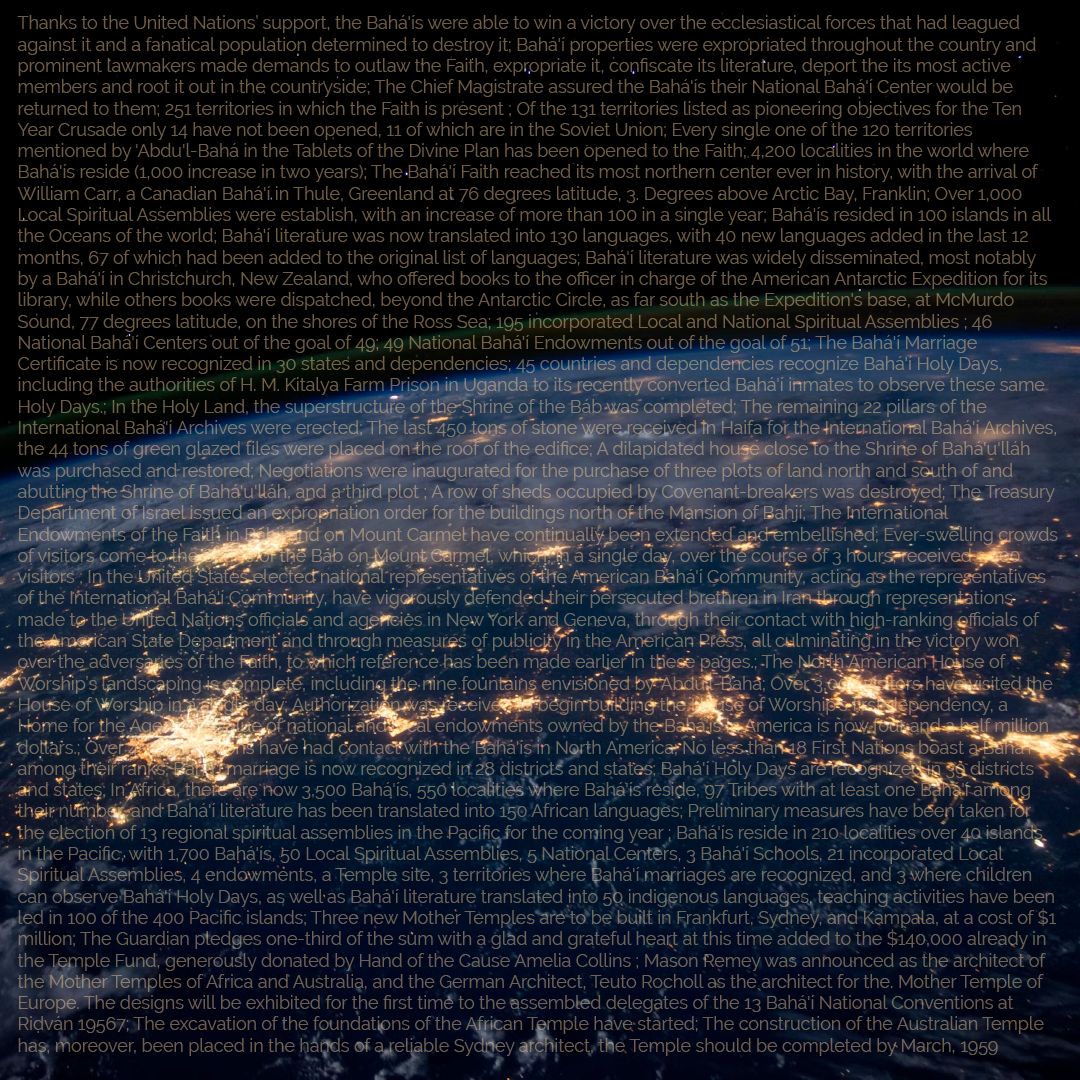 Citadel of Faith, Shoghi Effendi, Letter of April 29, 1953, Forty-Fifth Annual Convention: U.S. Tasks in World Crusade.