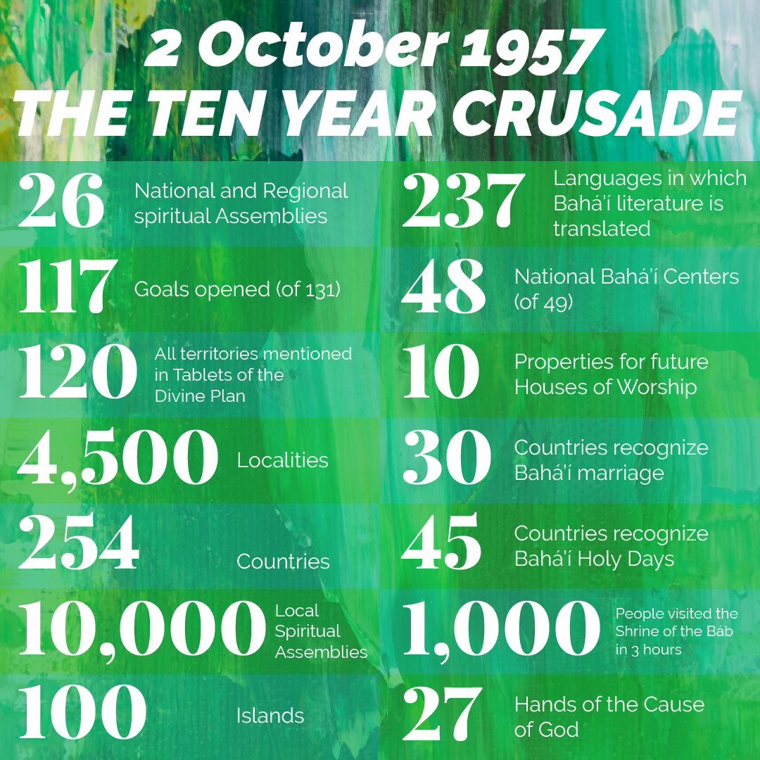 The last achievements of the Ten Year Crusade before the passing of Shoghi Effendi