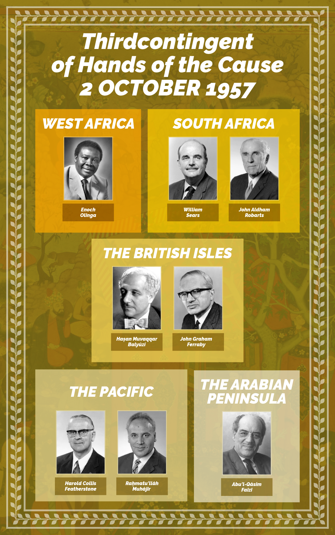 2 October 1957: The Guardian appoints a third contingent of Hands of the Cause