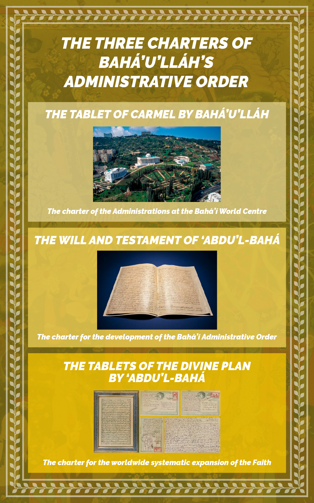 - Several properties were acquired in Bahjí and on Mount Carmel