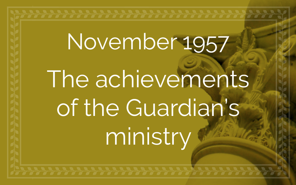 Shoghi Effendi’s accomplishments by November 1957