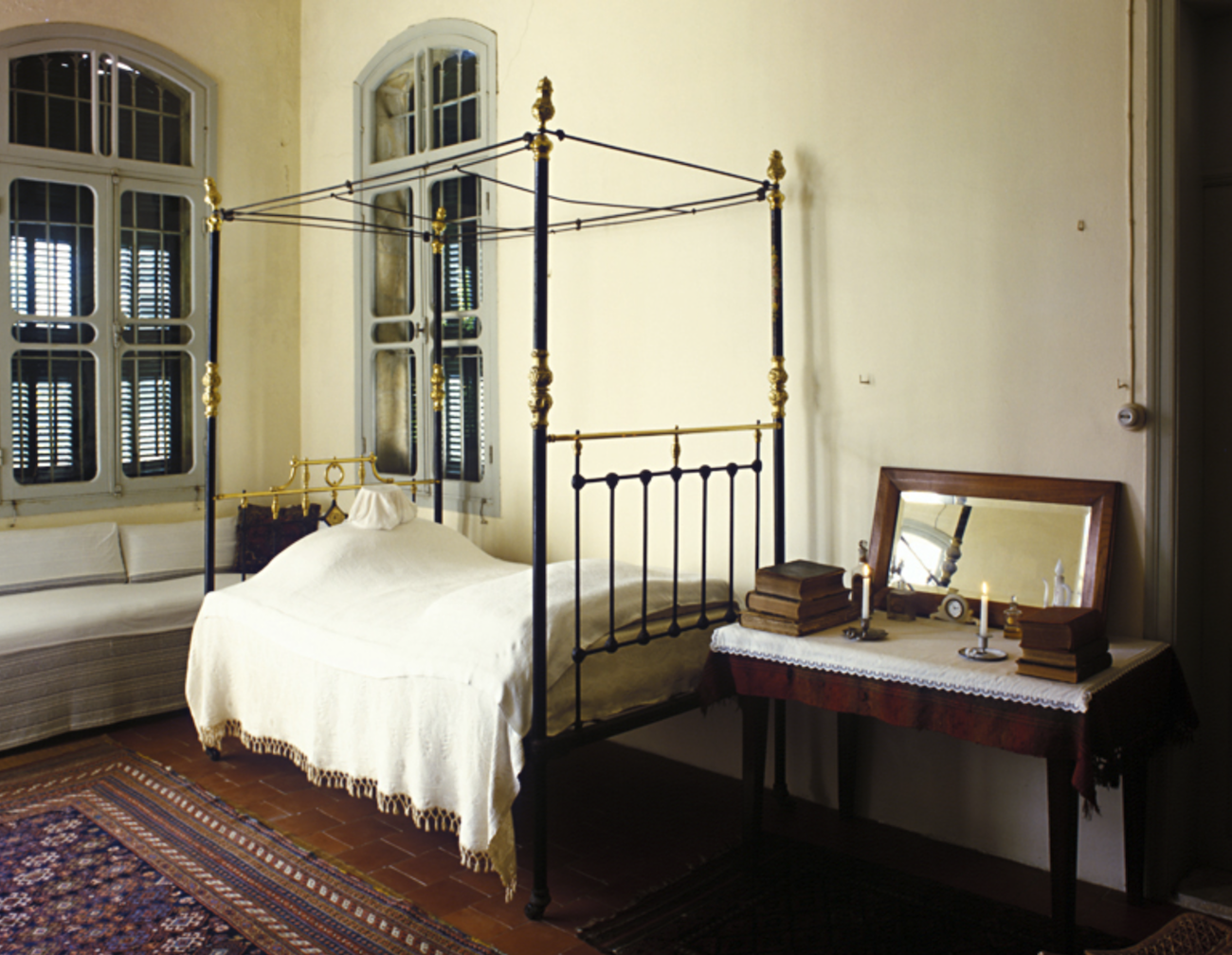 The bedroom of 'Abdu'l-Bahá in His house at 7 Haparsim in Haifa, where He passed away. Source: Baha'i Points of Interest.