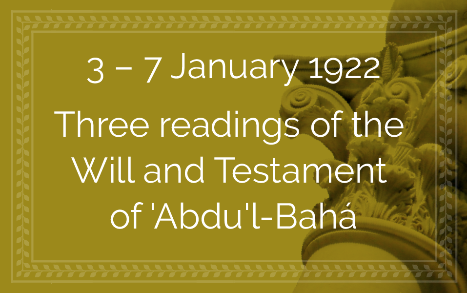 7 January 1922: Third Reading of ‘Abdu’l-Bahá’s Will and Testament