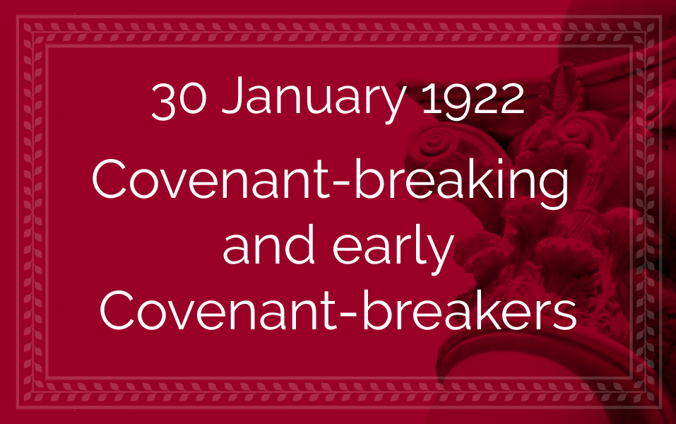 November 1921 – January 1922: Rumblings of Covenant-breaking