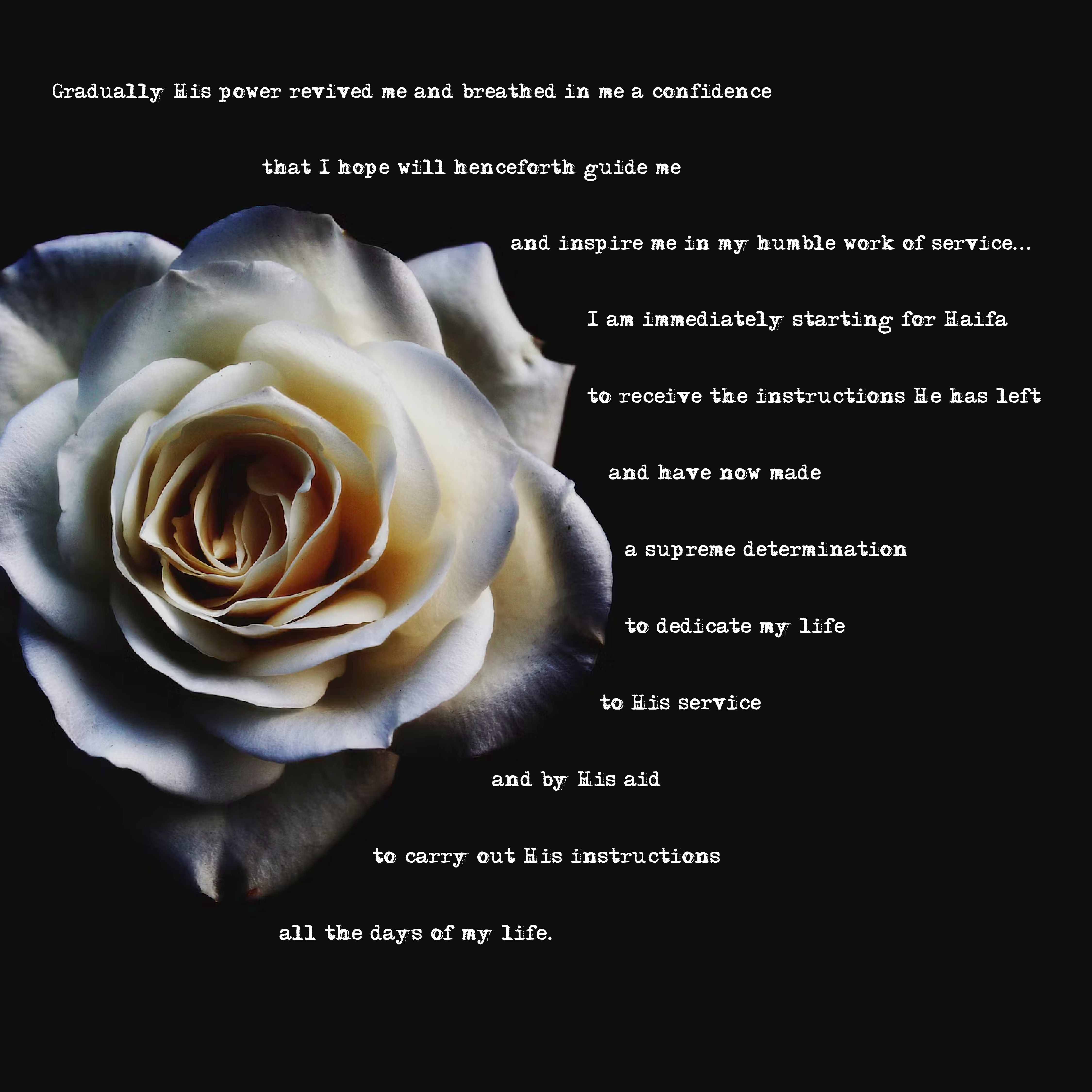 “Gradually His power revived me and breathed in me a confidence that I hope will henceforth guide me and inspire me in my humble work of service... I am immediately starting for Haifa to receive the instructions He has left and have now made a supreme determination to dedicate my life to His service and by His aid to carry out His instructions all the days of my life.” Background Photo by Sebastian Molina fotografía on Unsplash.