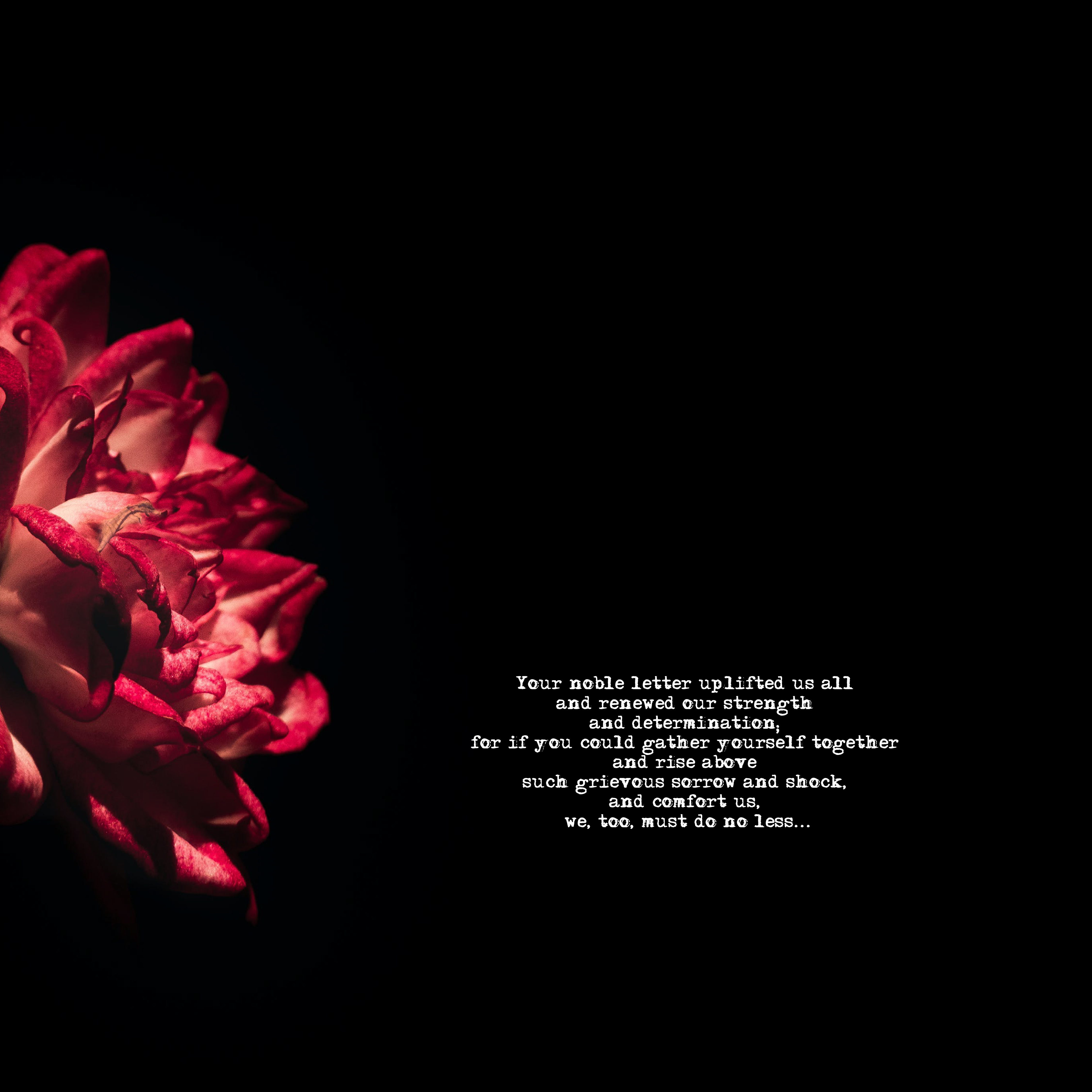 “Your noble letter uplifted us all and renewed our strength and determination; for if you could gather yourself together and rise above such grievous sorrow and shock, and comfort us, we, too, must do no less...” Background photo from Taylor Lastovich on Pexels.