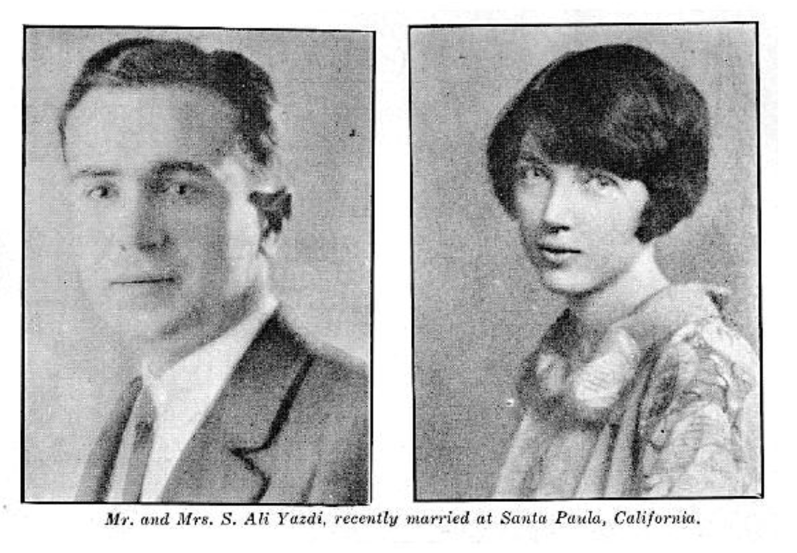 ‘Alí Yazdí and Marion Carpenter Yazdí shortly after their marriage, a few years before their pilgrimage. Source: Wikimedia Commons.