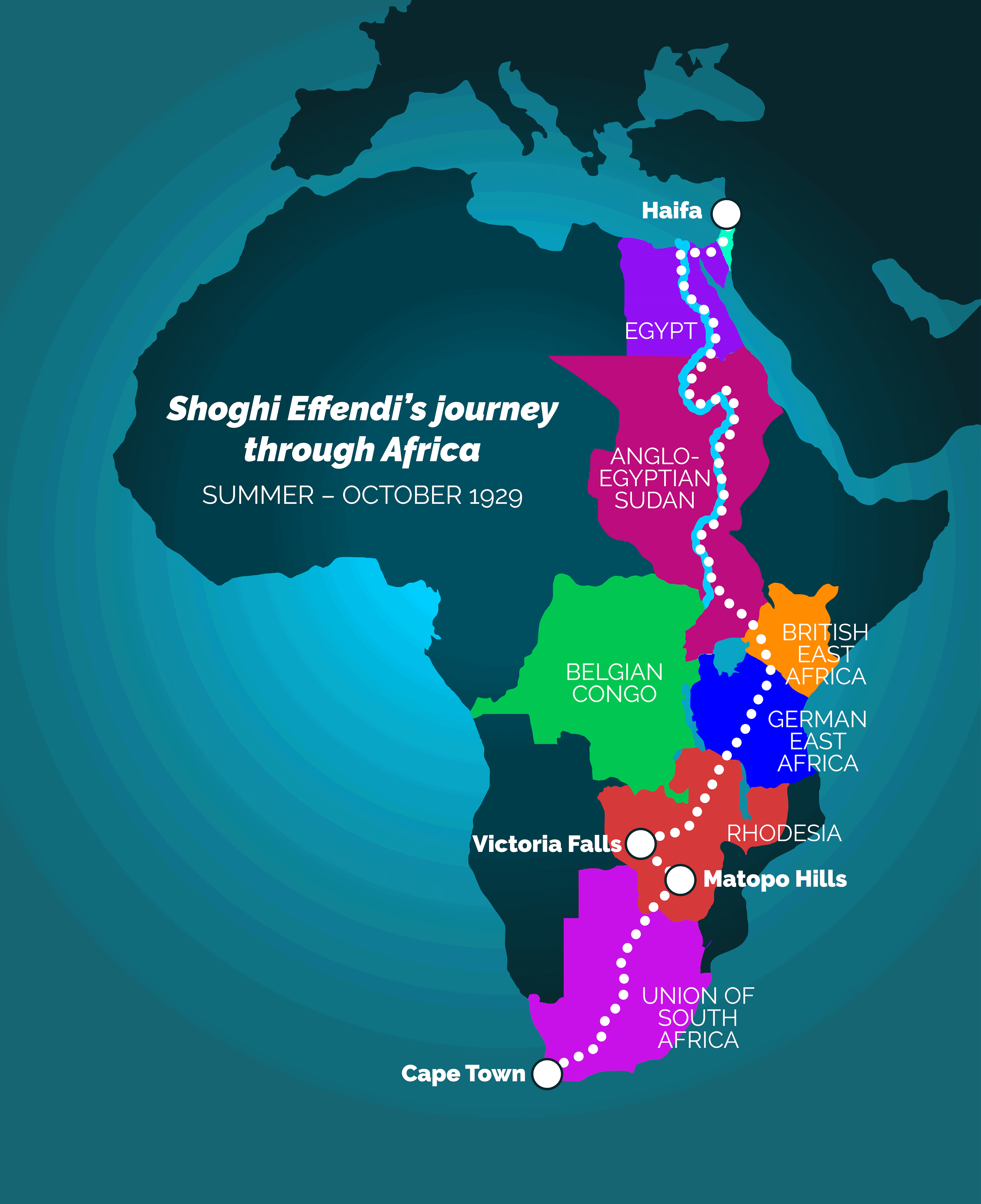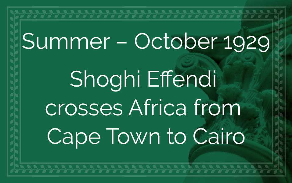 Summer – October 1929: Shoghi Effendi crosses Africa from Cape Town to Cairo