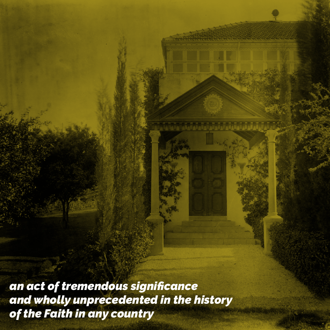The Guardian took immediate action, cabling the Moscow Assembly to vigorously intercede with the Soviet authorities and prevent the expropriation of the House of Worship in ‘Ishqábád, and he instructed the Local Spiritual Assembly of Moscow to petition government authorities on behalf of the Bahá'ís of Russia.