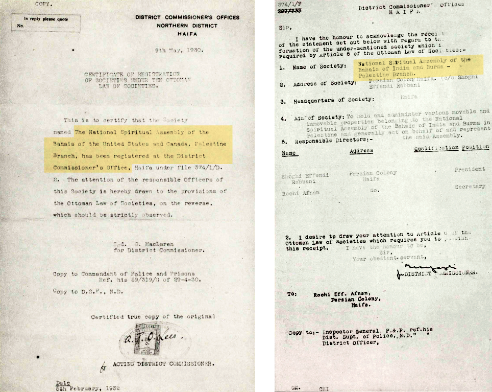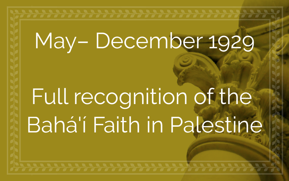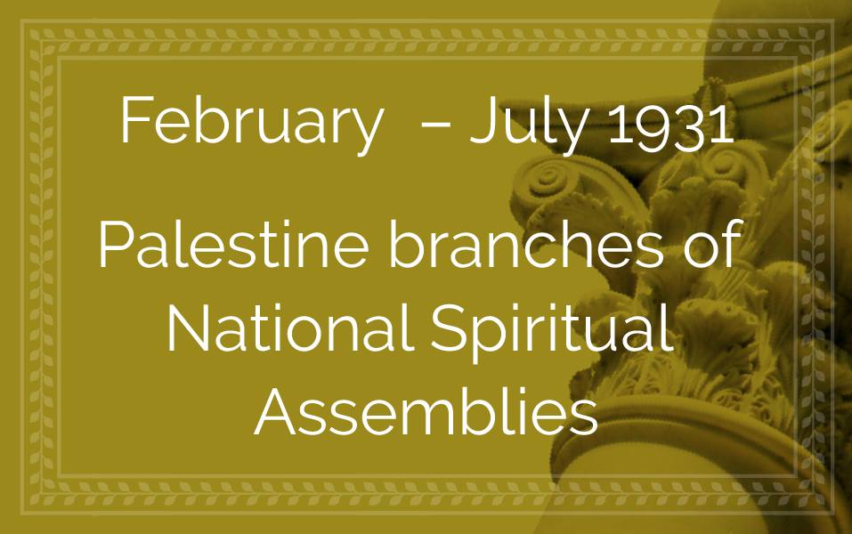 May 1931: Palestine/Israel branches of Bahá’í National Spiritual Assemblies