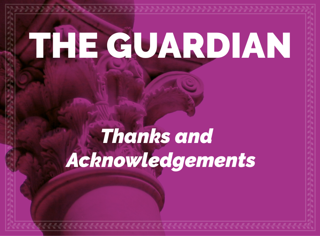 All the photographs in The Guardian are either public domain photographs, or photographs for which I was given express permission to publish. My many thanks go to those individuals and institutions who have given me permission to publish their photographs: