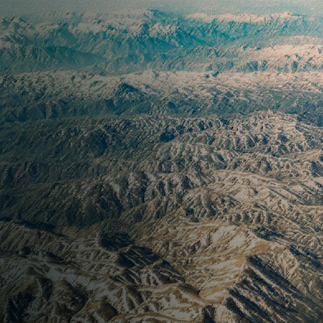 “Inhospitable”: A digital recreation of an aerial photograph of the mountainous region of Chihríq, made to emphasize the inhospitability of the region. © Violetta Zein.