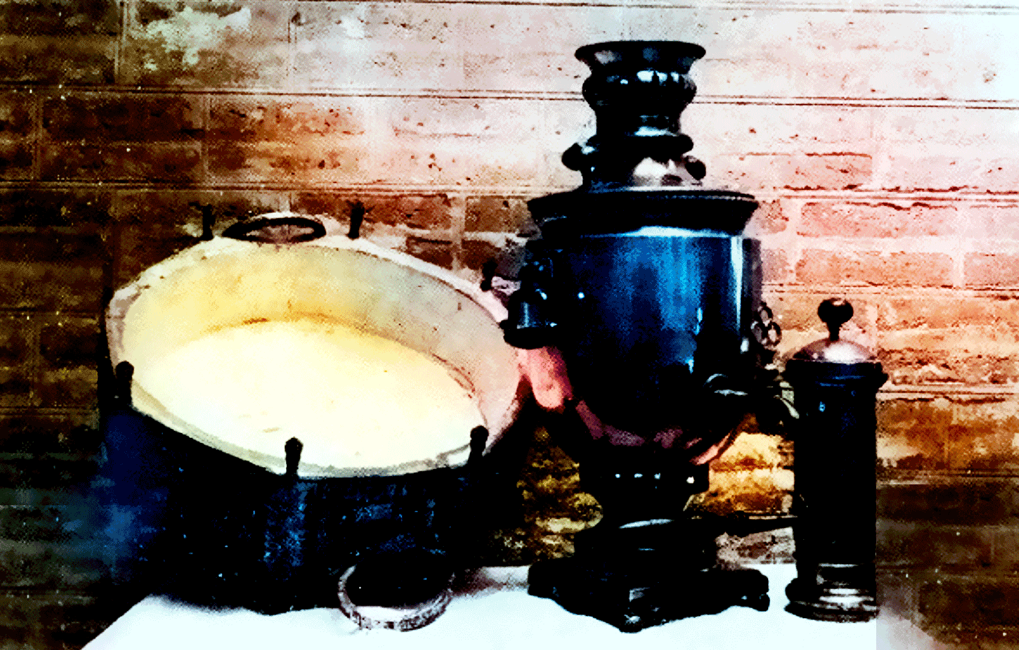 As a symbol of the happy early days of the marriage between Khadíjih Bagum and the Báb, a photo of precious relics: the Báb’s brazier and samovar, used daily in their house, as the next story recounts. Source: Nabíl, The Dawn-Breakers, page 55, colorized for this chronology by Violetta Zein.
