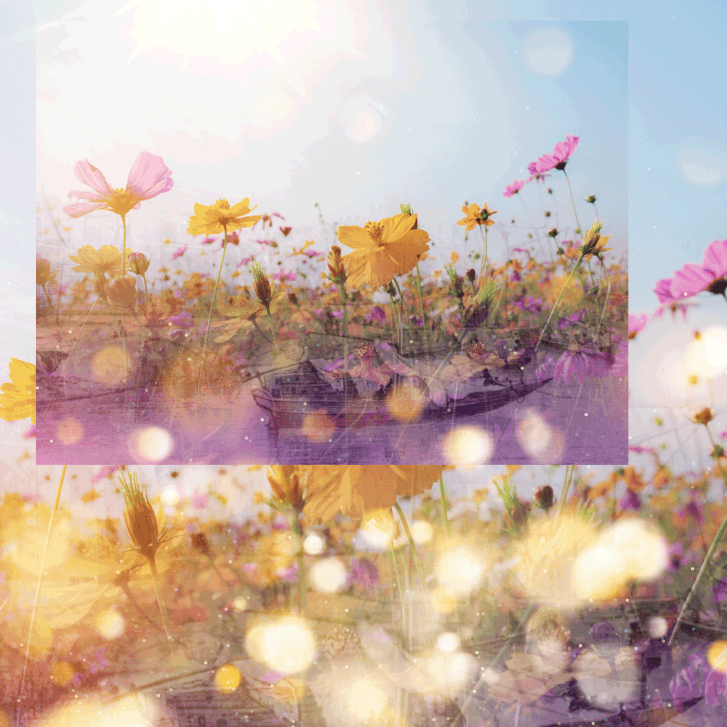 “Radiant dream”: An artistic interpretation of Khadíjih Bagum’s first dream of the Báb while He was working in Búshihr, the flowering meadow in which she sees Him, radiant, overlaid over an image of Búshihr. © Violetta Zein. Source of the flowering meadow photograph: Pexels. Source of the engraving of Búshihr: Wikimedia Commons.