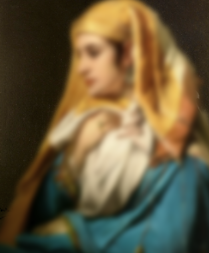 “Generations”: A blurred image of Jean-François-Portaels’s insightful post-1877 painting “Oriental Woman” as a meditation on generations separating ancestors and their descendants in this story about Khadíjih Bagum’s genealogy. Source of image inspiration: Wikimedia Commons.