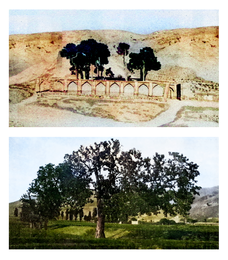 Two photographs of the outskirts of Shíráz where the Báb often went to walk, as recounted in the story below. Source: Nabíl, The Dawn-Breakers, page 56, colorized for this chronology by Violetta Zein.